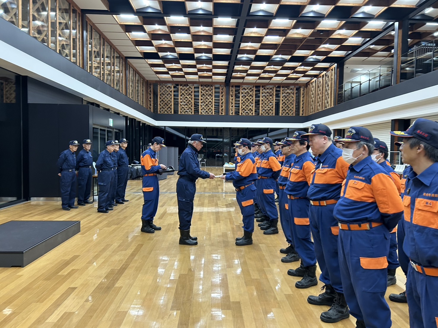 (写真は、開成町・消防友の会・神奈川県消防協会足柄上支部による激励会の様子です。)